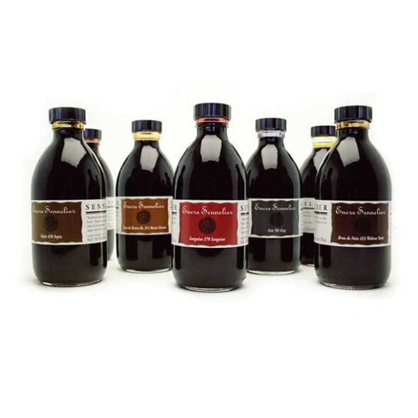 Ces encres sèchent vite et présentent une bonne résistance à l’eau sans pour autant être indélébiles. Ces encres sont très recherchées pour la calligraphie, le dessin à la plume, le lavis, pour la création textile et la recherche des matières. Elles conviennent à tout type de plumes métalliques, avec ou sans réservoir. Vous pourrez protéger vos créations avec du fixatif à crayon pour améliorer la résistance à la lumière. Pour conserver l’aspect brillant des encres et les protéger par un film plus résistant, il est possible d’utiliser le diluant Sennelier, à base de gomme-laque également.