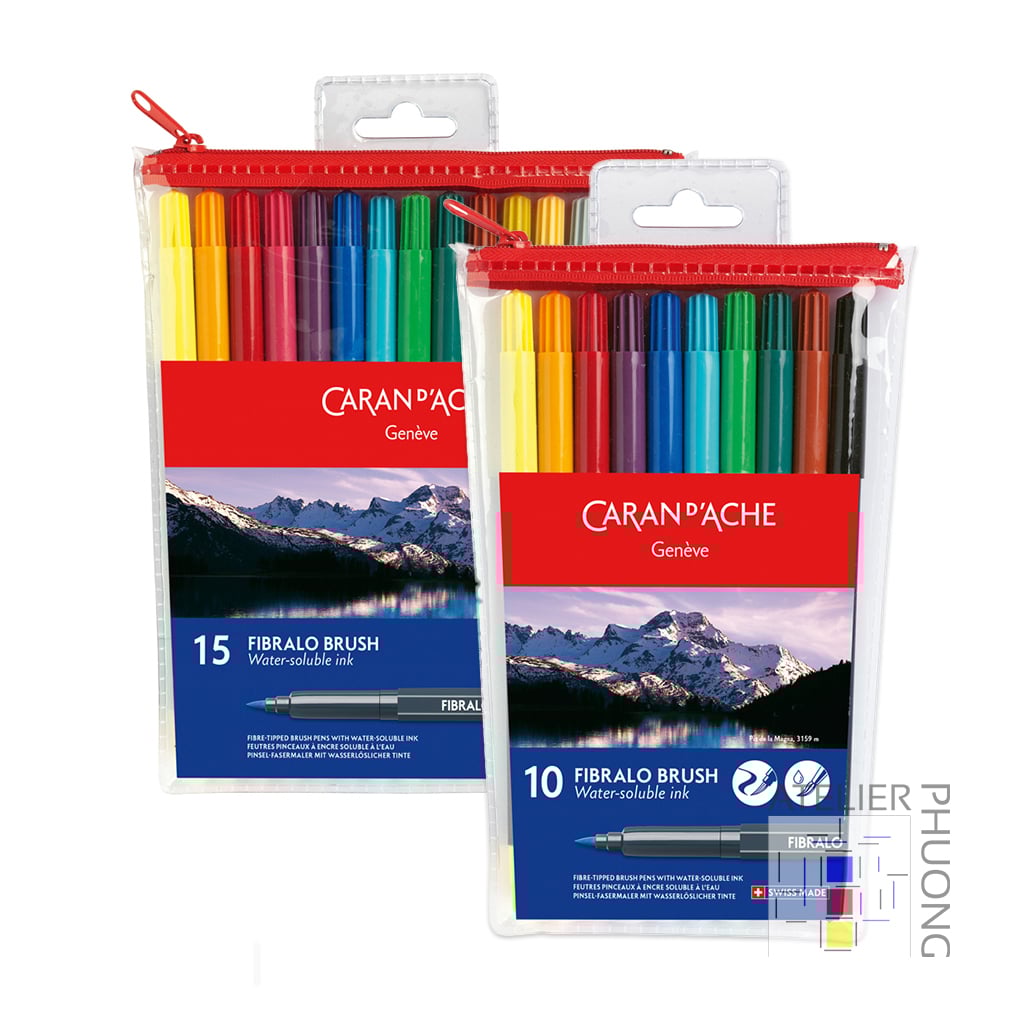Disponible en assortiments sous format pochette plastique avec un système “zip” de 10 et 15 feutres aquarellables.