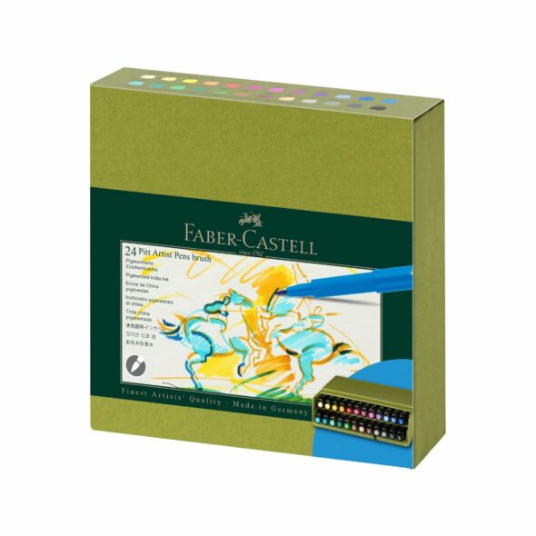 La Boîte Pitt Artist Pen Brush de FABER CASTELL comprend une assortiment de 24 feutres.