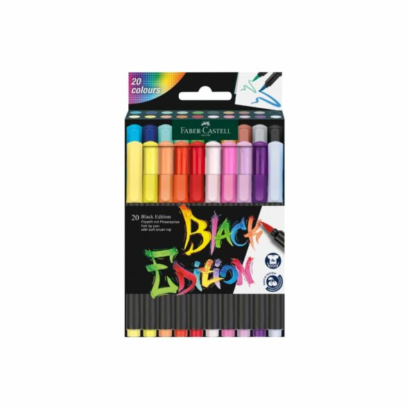 Les Feutres Black Edition de FABER CASTELL apportent beaucoup de couleurs aux bureaux des enfants et adolescents créatifs. Ils conviennent parfaitement à tous ceux qui souhaitent bénéficier d’une plus grande souplesse pour écrire, griffonner et colorier. La largeur de trait de la pointe pinceau souple varie en fonction de la prise en main du feutre. Cela permet de travailler à la fois sur des détails et sur une large zone.