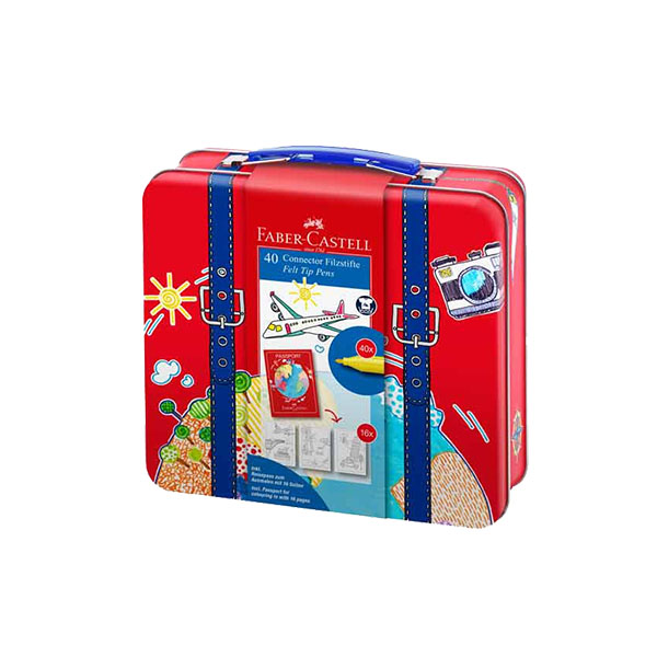 La Valisette de voyage Connector Faber Castell contient 40 Feutres Connector, 1 Passeport voyage à colorier. Il est également fourni avec 6 Clips Connector, clips de connexion rotatifs, pour bricoler et jouer avec beaucoup d’imagination.