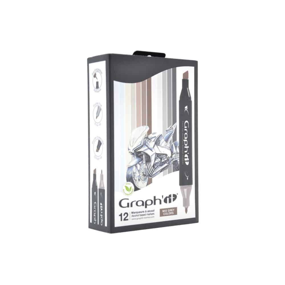 Le Set Couleurs 12 Nuances de gris met à votre disposition des gris différents pour tous vos contrastes et ombrages : 9100 Cool Grey 1, 9102 Cool Grey 2, 9400 Warm Grey 0, 9402 Warm Grey 2, 9404 Warm Grey 4, 9406 Warm Grey 6, 9408 Warm Grey 8, 9500 Neutral Grey 0, 9502 Neutral Grey 2, 9504 Neutral Grey 4, 9506 Neutral Grey 6 et 9508 Neutral Grey 8.