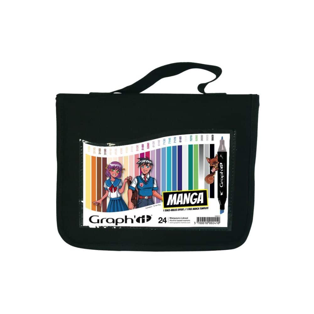 La Trousse de 24 Graph’It Manga contient les nuances suivantes : Blender (0000) – Vanilla (1140) – Banana (1150) – Apricot (2110) – Cognac (3150) – Cacao (3180) – Almond (4110) – Ghost (4125) – Nude (4150) – Skin (4155) – Silk (5110) – Camellia (5130) – Margaux (5180) – Cranberry (5260) – Orchid (6130) – Lavender (6140) – Midnight (6185) – Celestial (7130) – Lagoon (7145) – Lapis (7170) – Antartic (7210) – Cedar (7270) – Lime (8260) – Black (9909).
