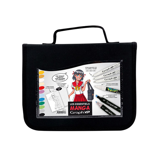 La Trousse Essentiels Manga, conçu pour offrir tout le matériel nécessaire à la réalisation de personnages manga, contient :