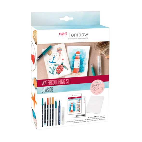 Le Set d’aquarelle Bord de mer Tombow contient tout le nécessaire pour réaliser de belles illustrations. Les sets ont été conçus et créés par les artistes May & Berry et contiennent une notice avec les conseils et astuces des pros.