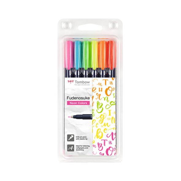Le Set de 6 feutres Fudenosuke contient des couleurs fluo : 90 néon rose, 91 néon jaune, 92 néon vert, 93 néon orange, 94 néon Rouge, 96 néon bleu.