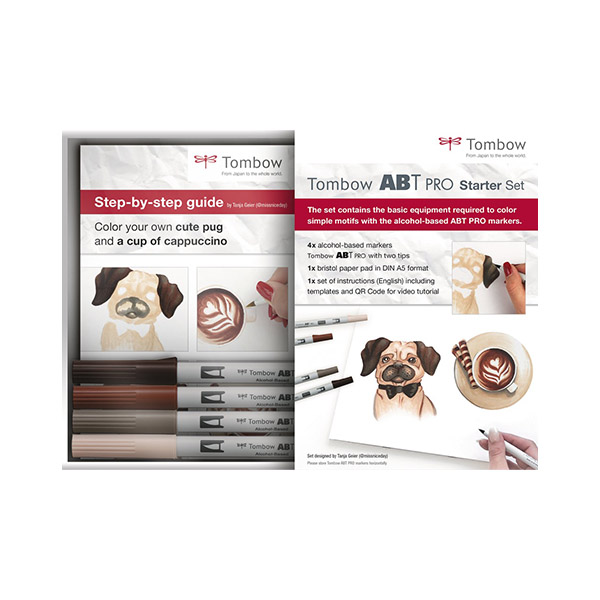 Cette dernière vous montre étape par étape comme il est facile de colorier un adorable petit carlin et une délicieuse tasse de capuccino avec les couleurs ABT PRO et le papier Bristol. Une version française de la notice est disponible en téléchargement.