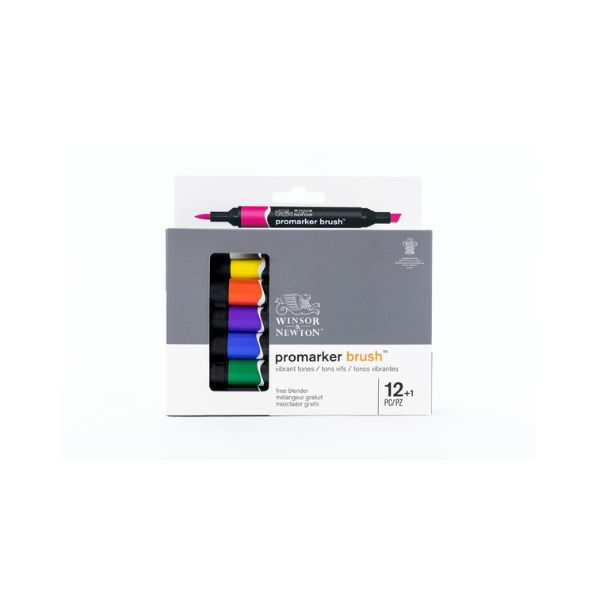 Embrassez la palette de Promarker Brush la plus vibrante possible avec le jaune, le potiron, le rouge, le rouge, le magenta, le violet, le cyan, le bleu royal, le vert vif, le vert luxuriant, le cacao, le gris chaud 5 et le noir. Comme tous les pinceaux Promarker, les 12 teintes peuvent être utilisées avec le Blender incolore gratuit pour explorer les tons gradués ou les teintes plus sourdes. Ces 12 couleurs vibrantes ont été spécialement sélectionnées pour se compléter et élargir votre collection de couleurs.