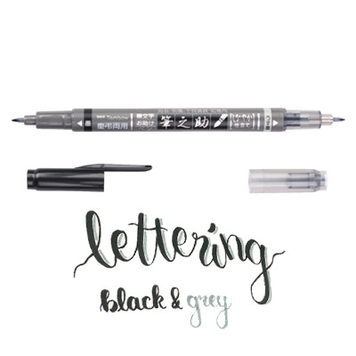 Le Feutre Fudenosuke twin de Tombow a deux pointes de pinceau flexibles et est particulièrement adapté pour la calligraphie, esquisses, le lettrage à la main, doodling et bien plus encore. La largeur de la ligne varie de mince à large en fonction de la pression exercée sur la pointe. La pointe souple (avec degré de dureté 2) est particulièrement adapté pour les petits écrits.