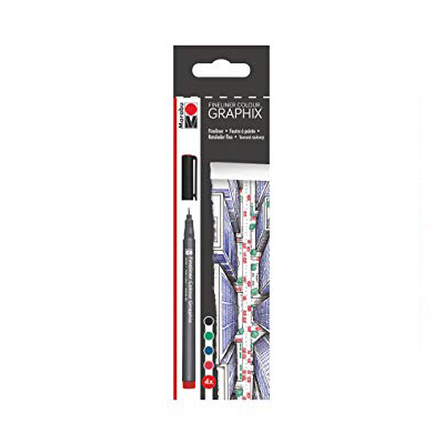 Les Feutres Graphix de MARABU sont des fineliners de couleurs brillantes grâce à l’utilisation d’encre de Chine à base d’eau de qualité, résistante à la lumière et presque inodore. Le fineliner est composé d’une pointe en plastique sertie de métal et capuchon avec clip et ne déteint pas.