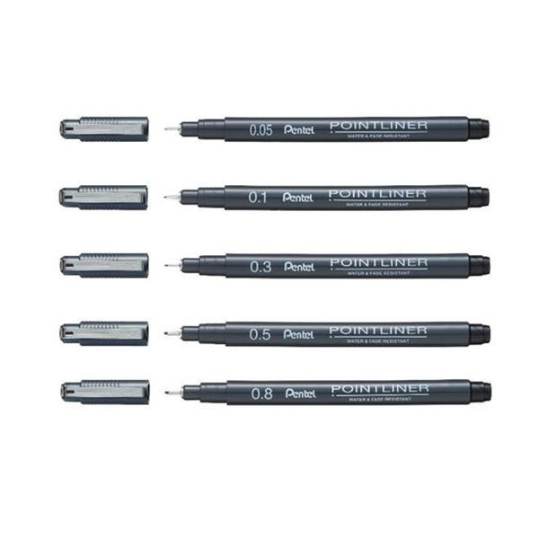 Le Feutre Pointliner de Pentel est un feutre technique à pointe calibrée. Il possède une bague métal et un clip métal. Son encre à pigments est indélébile de couleur noire. Il résiste à l’eau et à la lumière, certifiée ISO 14145-2.