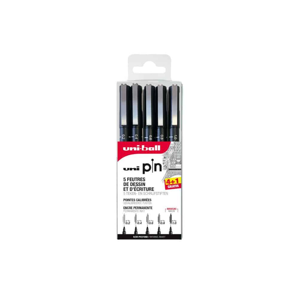 UNI – Set de 5 feutres Uni-Pin de 0.2 à 1