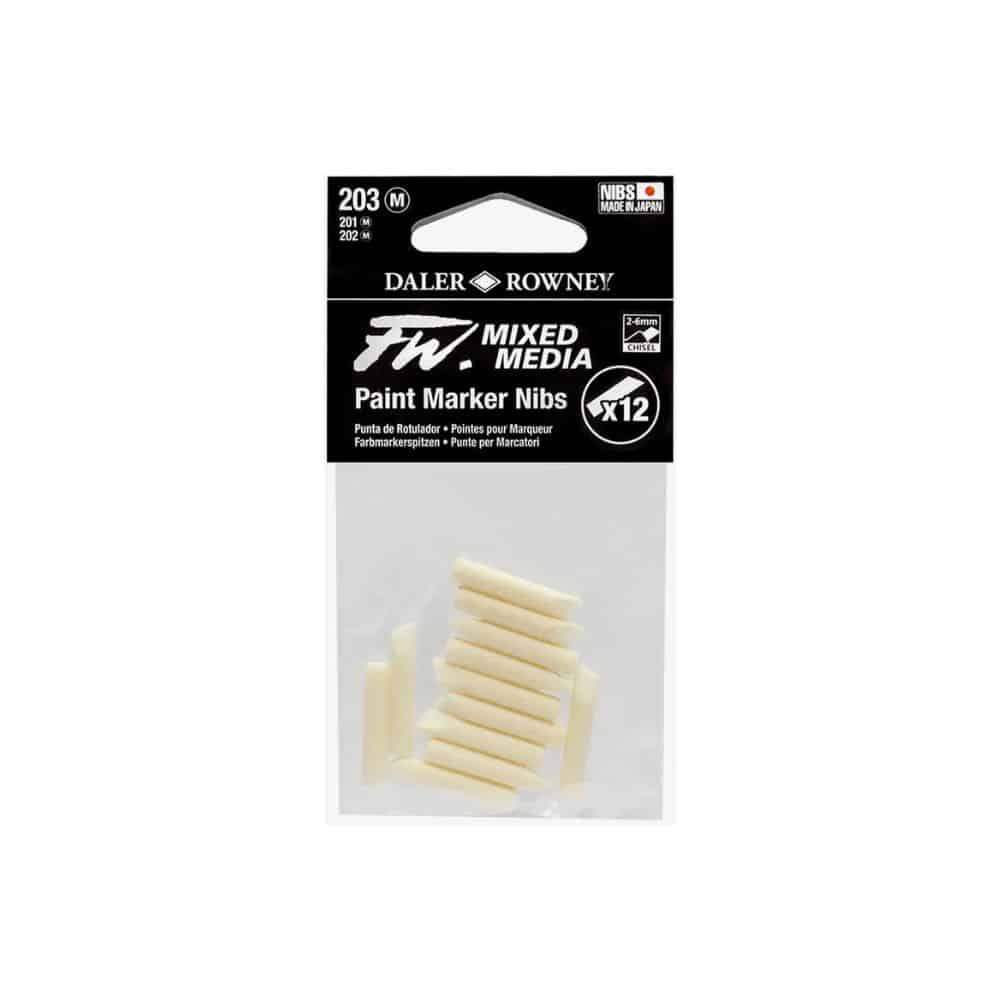 Le Set de 12 pointes ciselées 2-6 mm est conçu pour les marqueurs à peinture Daler-Rowney FW Mixed Media. Idéales pour remplacer les pointes usées ou varier les tracés, ces pointes en fibre assurent une application fluide et précise des encres acryliques, aquarelles ou encres de dessin.