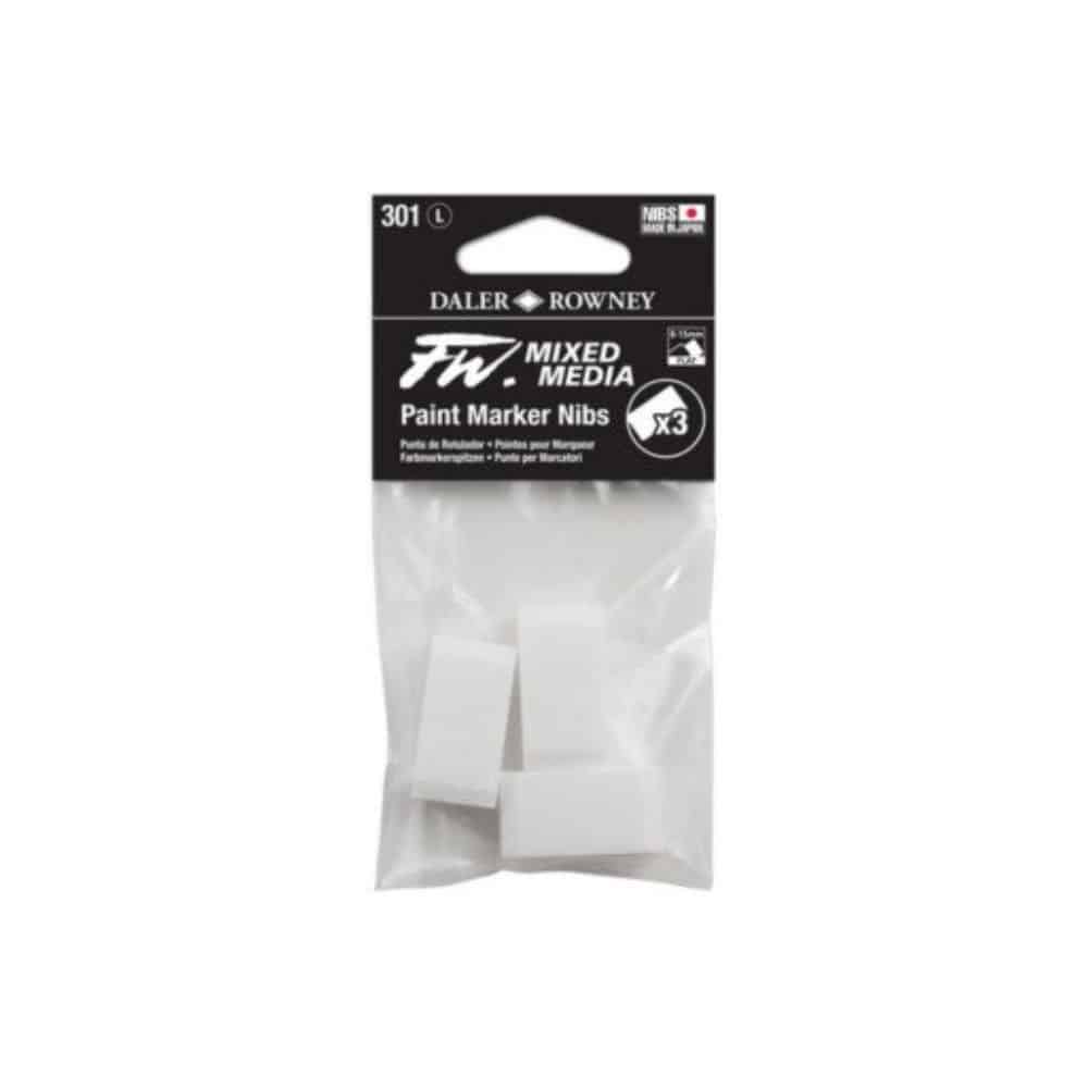 Le Set de 3 pointes plates 8-15 mm est conçu pour les marqueurs à peinture Daler-Rowney FW Mixed Media. Idéales pour remplacer les pointes usées ou varier les tracés, ces pointes en fibre assurent une application fluide et précise des encres acryliques, aquarelles ou encres de dessin.