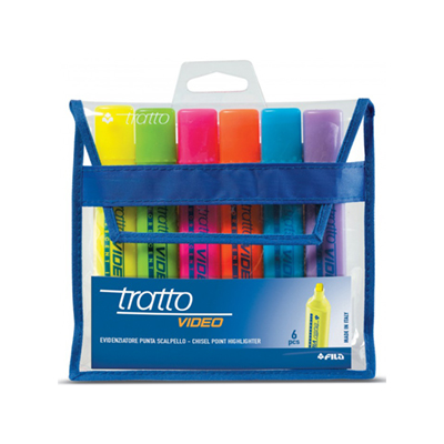 La Pochette de Surligneurs de Tratto sont à pointe biseautée avec encre universelle à fluorescence élevée et séchage rapide.