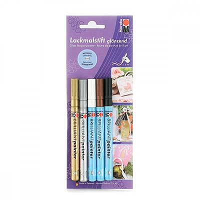 Disponible en set de 5 feutres 1-2mm de couleurs différentes : noir, bronze, blanc, or et argent.