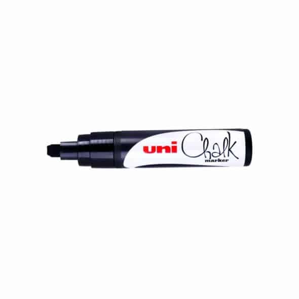 Le Marqueur craie Chalk Marker 15 mm UNI est l’outil parfait pour créer des affichages visibles et expressifs. Sa pointe rectangulaire extra-large permet un tracé net, couvrant et homogène, idéal pour les vitrines, panneaux, tableaux noirs ou surfaces lisses non poreuses.