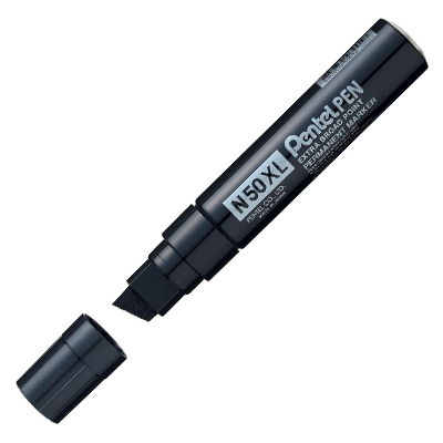 Le Marqueur permanent noir N50XL de PENTEL est un marqueur de l’extrême avec un corps aluminium. L’encre résiste aux conditions extrêmes : pluie, neige, humidité, lumière, températures de -30° à 60°C en extérieur comme en intérieur. Son format EXTRA-LARGE est parfait pour affiches et gros caractères. Il vous offre une longue durée d’utilisation : jusqu’à 1km d’écriture. Il s’utilise sur presque toutes les surfaces : papier, carton, bois, plastique, caoutchouc, métal, verre, plâtre, céramique, polyéthylène, cuir… et tous usages.