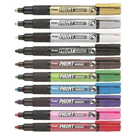 Le Marqueur permanent Paint Marker PENTEL est un marqueur de peinture couvrante et brillante. Il s’agit d’une encre à pigments couleur métallisée sans xylène, indélébile et opaque. Ce marqueur résiste très bien dans le temps. Il s’utilise sur presque toutes les surfaces : carton, bois, plastique, caoutchouc, métal, verre, plâtre, céramique, polyéthylène, cuir et tous usages. Le Paint Marker sèche rapidement et convient pour le bricolage, l’industrie et la décoration.