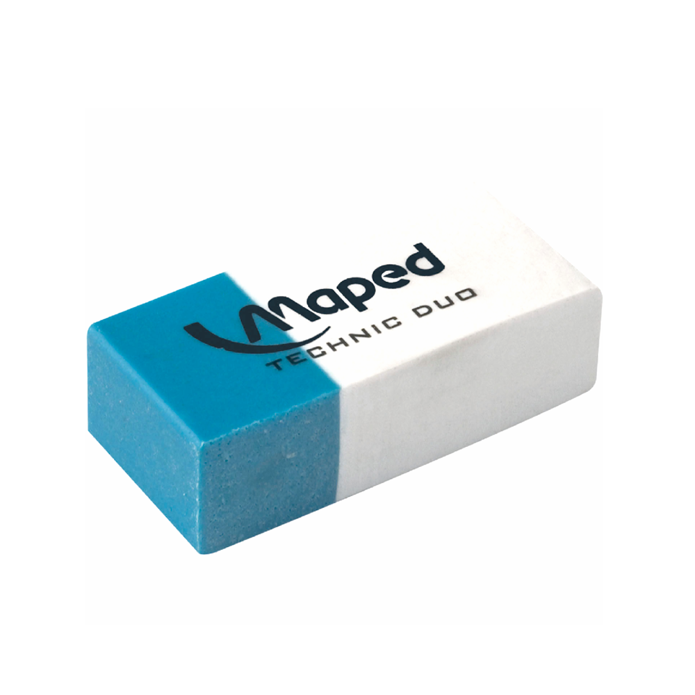 La Gomme Technic Duo de MAPED est une gomme qui efface l’encre, le crayon et le graphite.