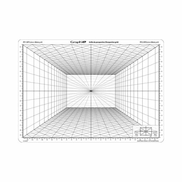 La Grille de perspective frontale GRAPH’IT est un outil pratique et précis pour maîtriser la perspective frontale dans vos dessins. Conçue au format A4 et imprimée sur un plastique souple, elle permet d’intégrer facilement des personnages, objets ou décors dans une construction juste et régulière.