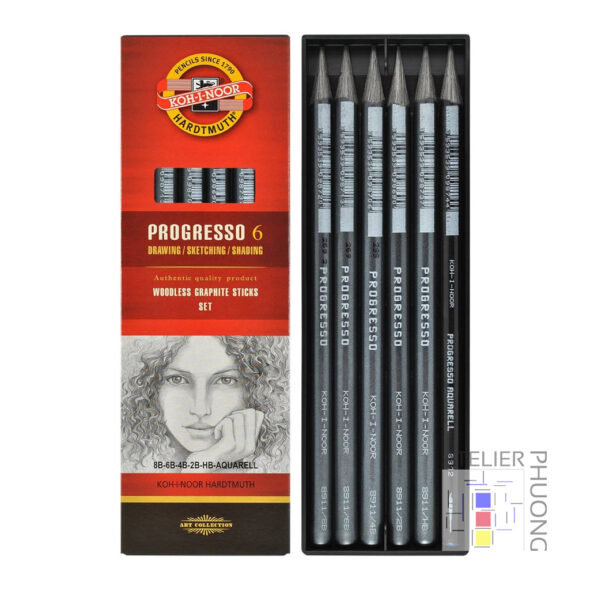 Les Mines de plomb Progresso de KOH I NOOR sont rassemblées dans un étui pour le plaisir de tous. Ce sont des mines de graphite pure de qualité supérieure parfait pour le dessin et l’esquisse. Son corps recouvert d’un vernis et sans bois permet de travailler des surfaces plus importantes sans se salir les mains.