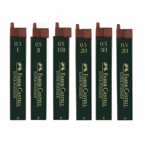 Les Mines super-polymer 0,5 mm FABER CASTELL sont particulièrement résistantes à la casse et offrent une capacité de glissement exceptionnelle. Avec un trait noir intense et saturé en couleur, ces mines fines de 0,5 mm conviennent à la plupart des porte-mines usuels. Elles sont contenues dans une recharge facile et propre, ce qui permet un remplissage simple et sans effort grâce à une aide pratique. Chaque boîte de recharge contient 12 mines, disponibles en degrés de dureté F, 2B, B, HB, H, 2H et 3H.