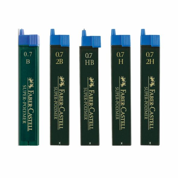 Les Mines super-polymer 0,7 mm FABER CASTELL sont particulièrement résistantes à la casse et offrent une capacité de glissement exceptionnelle. Avec un trait noir intense et saturé en couleur, ces mines fines de 0,7 mm conviennent à la plupart des porte-mines usuels. Elles sont contenues dans une recharge facile et propre, ce qui permet un remplissage simple et sans effort grâce à une aide pratique. Chaque boîte de recharge contient 12 mines, disponibles en degrés de dureté 2B, B, HB, H et 2H.