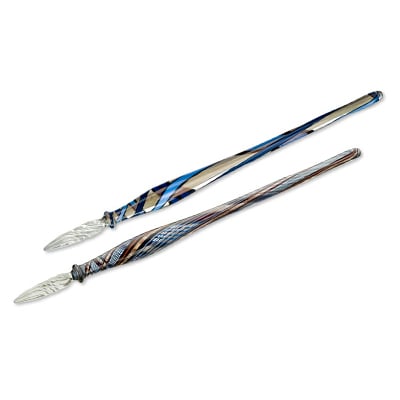 Sa forme torsadée retient l’encre dans les rainures et la restitue idéalement pour l’écriture calligraphique. Pensez à bien nettoyer la plume en verre après chaque utilisation.