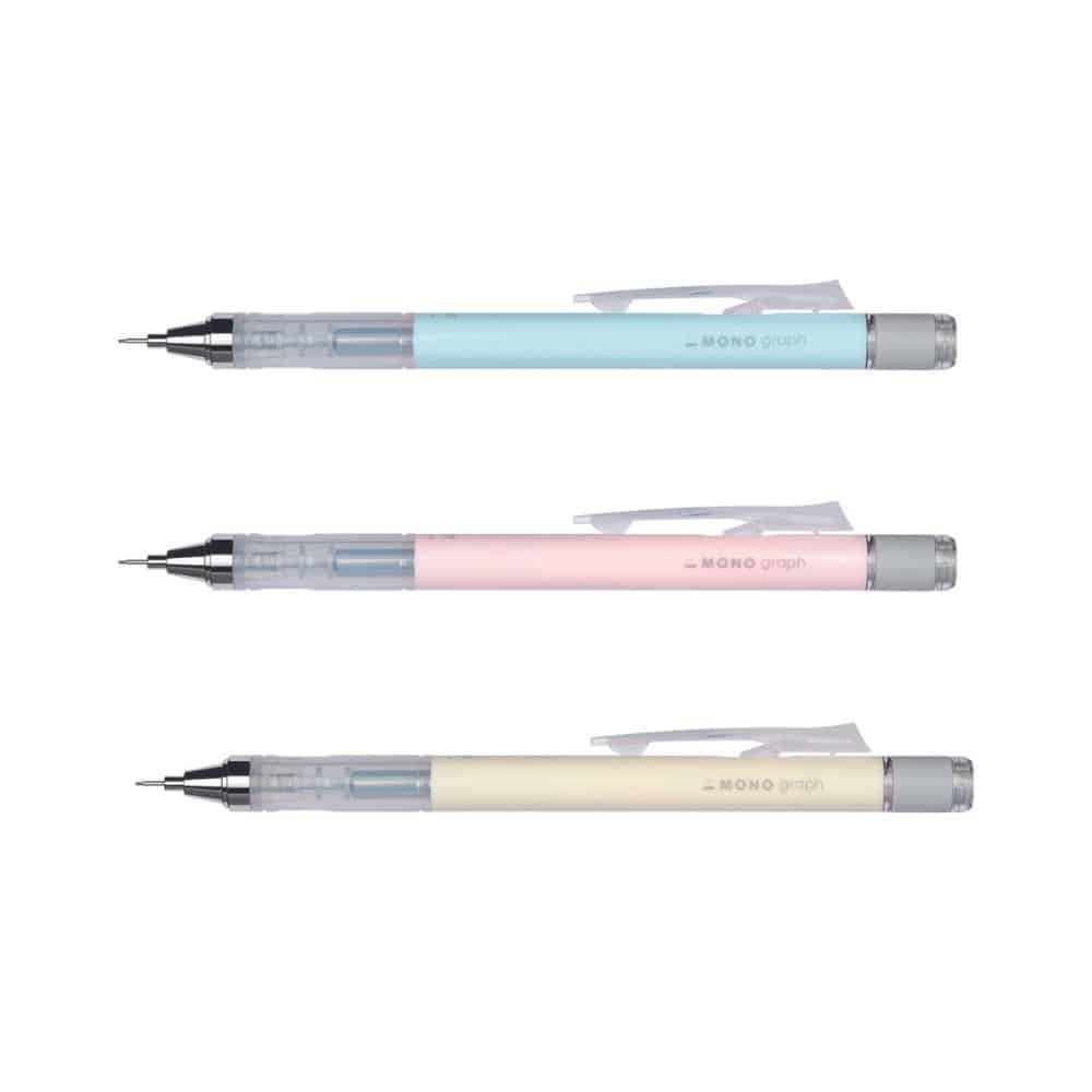 Le Portemine Mono Graph de TOMBOW est idéal pour un dessin précis, avec règles ou modèles. Il possède une pointe métallique de 4mm pour une largeur de ligne de 0,5mm. En secouant le crayon, la mine se déploie grâce à son mécanisme innovant “Shake”. La mine peut également être sortie en appuyant sur le clip. Le mécanisme peut se verrouiller en poussant le clip vers le haut. Il dispose également d’une gomme rechargeable avec sortie rotative.