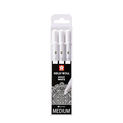 Le Gelly Roll de SAKURA est le leader mondial en stylos à encres gel grâce à sa formule unique d’encre pigmentée à base d’eau. La technologie exceptionnelle d’encre gel garantit des résultats d’écriture souple sans exercer un pression sur le pointe et elles donnes des lignes bien définies en écrivant et en dessinant. Le stylo n’est pas seulement un article d’écriture, mais il convient parfaitement à toutes sortes d’activités créatives. Sakura a mis en en oeuvre la technologies du débit d’encre contrôlé des Gelly Roll White en pointes de trois épaisseurs : fine, moyenne et épaisse.
