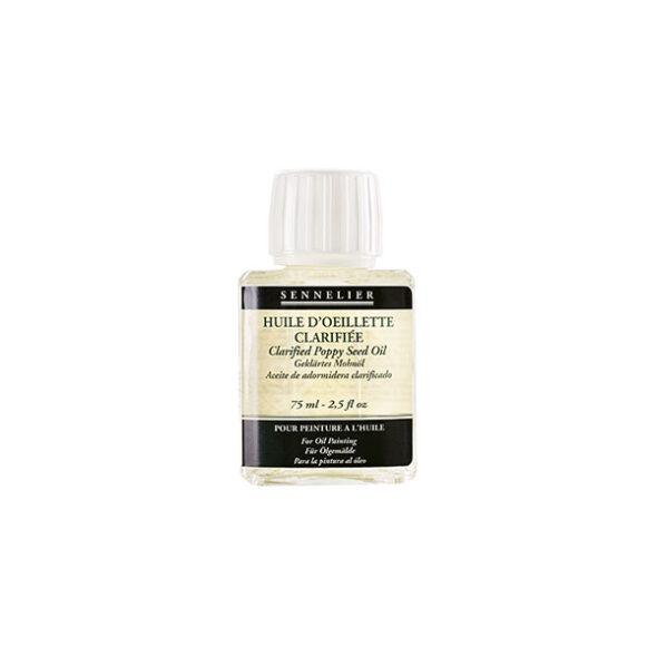 L’Huile d’œillette SENNELIER, extraite des graines de pavot, est plus claire et moins jaunissante que les huiles de lin. Elle est spécialement recommandée pour les tons clairs et les bleus notamment. Moins siccative que les huiles de lin et de carthame, une addition correcte du Siccatif de Courtrai Sennelier permet d’harmoniser le séchage. Eviter les excès.