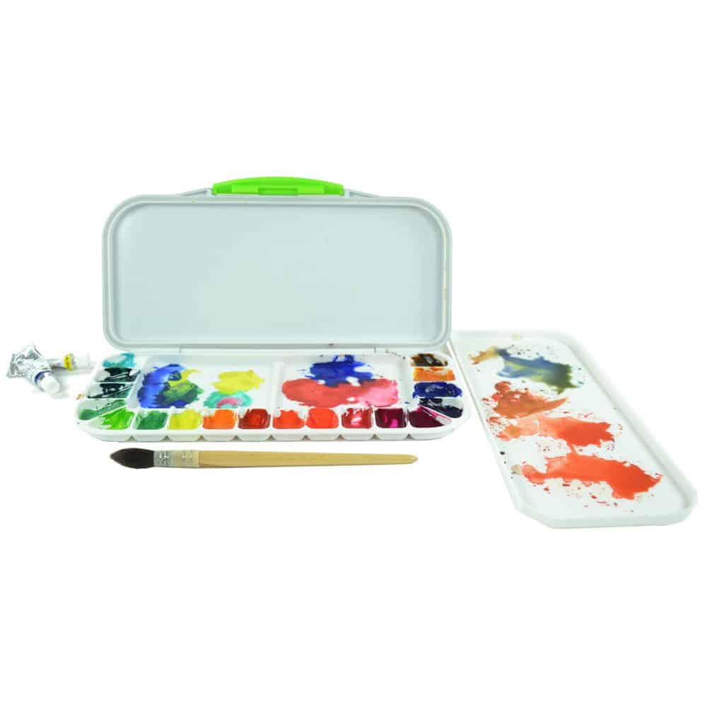 La Palette hermétique à 18 compartiments assure une conservation optimale des couleurs humides, idéale pour les peintres en déplacement ! Ses dimensions de 27 x 12,8 cm la rendent solide et compacte, parfaite pour peindre sur le vif. Son joint en caoutchouc garantit une étanchéité parfaite. Elle comprend 18 godets, 2 grands compartiments et un sous-couvercle amovible pour les mélanges de couleurs. Facile à nettoyer pour une utilisation pratique.