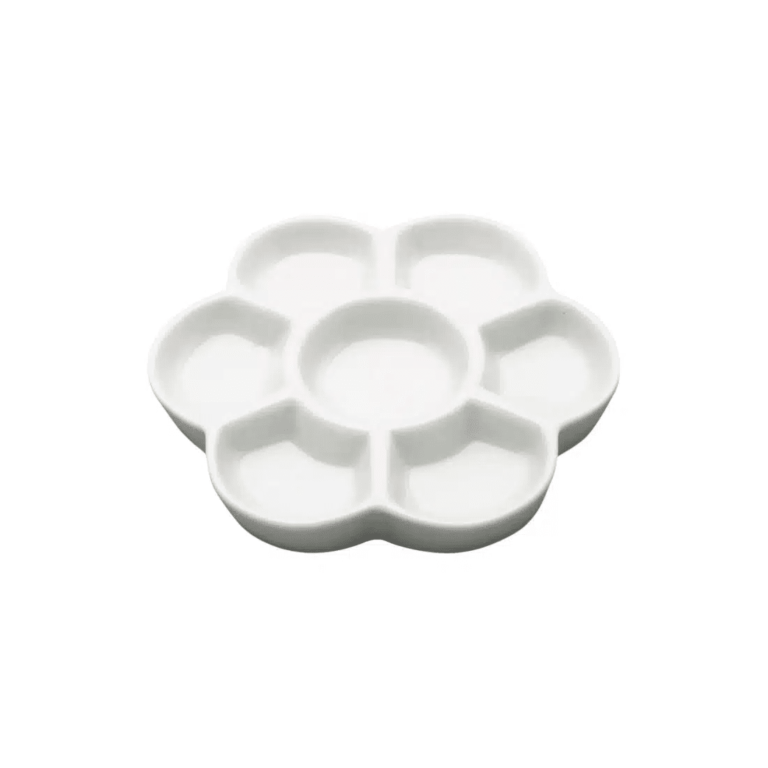 La Palette fleur en porcelaine de CORECT’ART, de 15 cm de diamètre, assure une utilisation confortable et polyvalente grâce à ses 7 compartiments disposés autour d’un centre circulaire. Cet outil indispensable pour les artistes offre une expérience optimale avec sa surface lisse et non poreuse, facile à nettoyer et résistante aux taches et aux rayures.