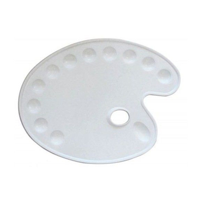 La Palette à peinture blanche ovale de Talens comporte 11 puits ronds et 1 trou conçu pour le maintien du pouce. Elle est en plastique et très résistante.