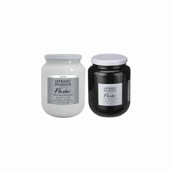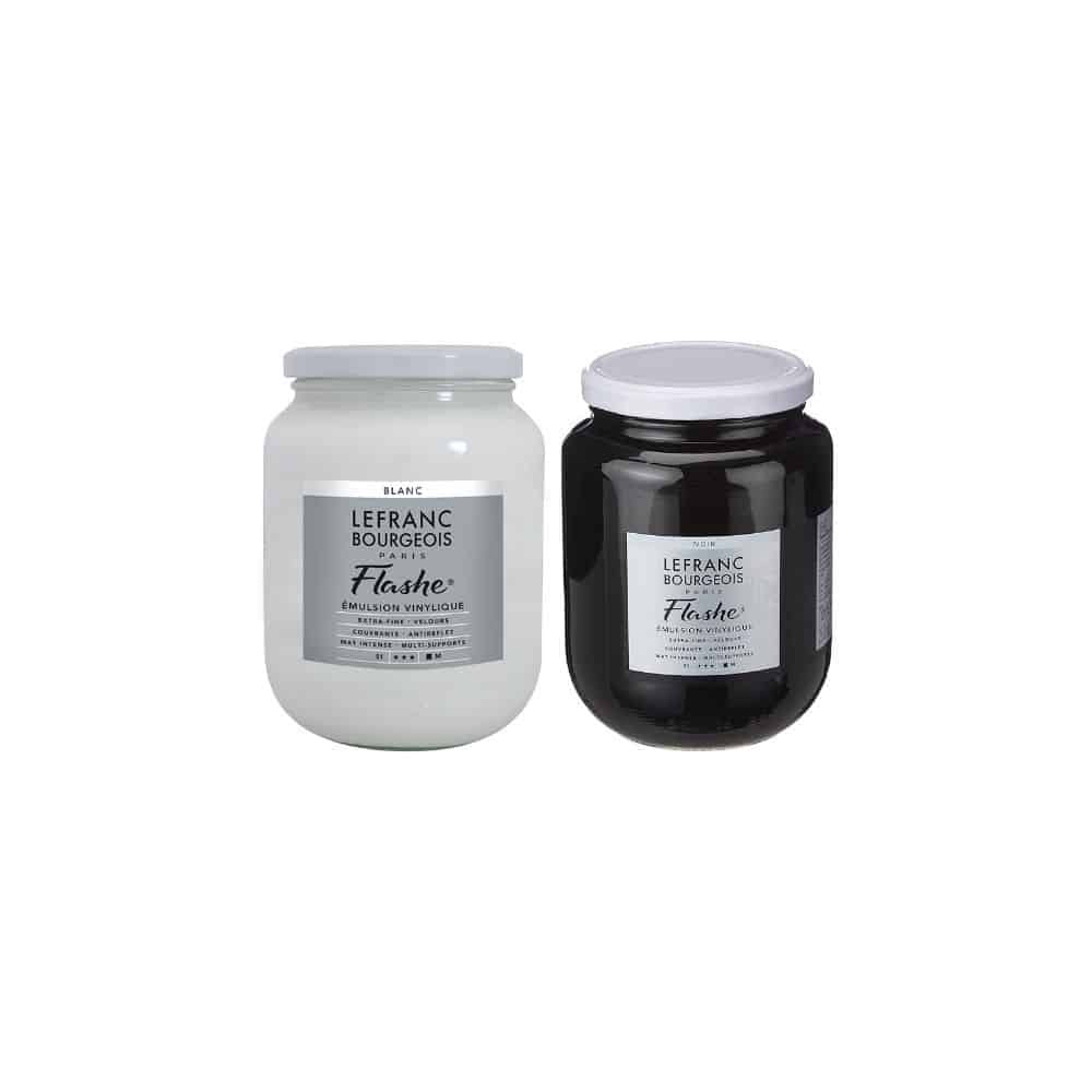 La Peinture Flashe de LEFRANC BOURGEOIS est l’un des premiers matériaux modernes offrant à l’expression artistique d’autres ressources que la peinture à l’huile. Elle est la première peinture synthétique de l’histoire : Flashe est une peinture vinyle à base de polymères supérieures. Cette gamme de couleurs vives se caractérise par sa puissance couvrante, son opacité et sa matité. Toutes les couleurs sont miscibles entre elles. Elles sont solubles dans l’eau, deviennent indélébile après séchage et s’adaptent à de multiples supports (le papier, le verre, le carton, la pierre, le bois, le tissu,…).