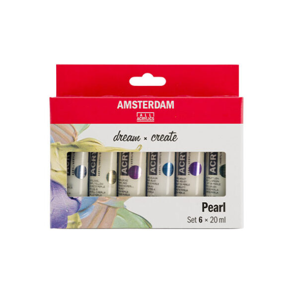 Amsterdam propose une nous Set de 6 tubes de peinture acrylique de poche : Six couleurs nacrées de la série Amsterdam Standard.