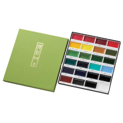 Le Set d’aquarelle japonaise Gansai de KURETAKE vous propose des couleurs vives et intenses. Riches en pigments, Les couleurs se mélangent parfaitement entre elles et se retravaillent à volonté. Les grandes maîtres calligraphes les utilisent traditionnellement pour mettre leurs réalisations en couleur.
