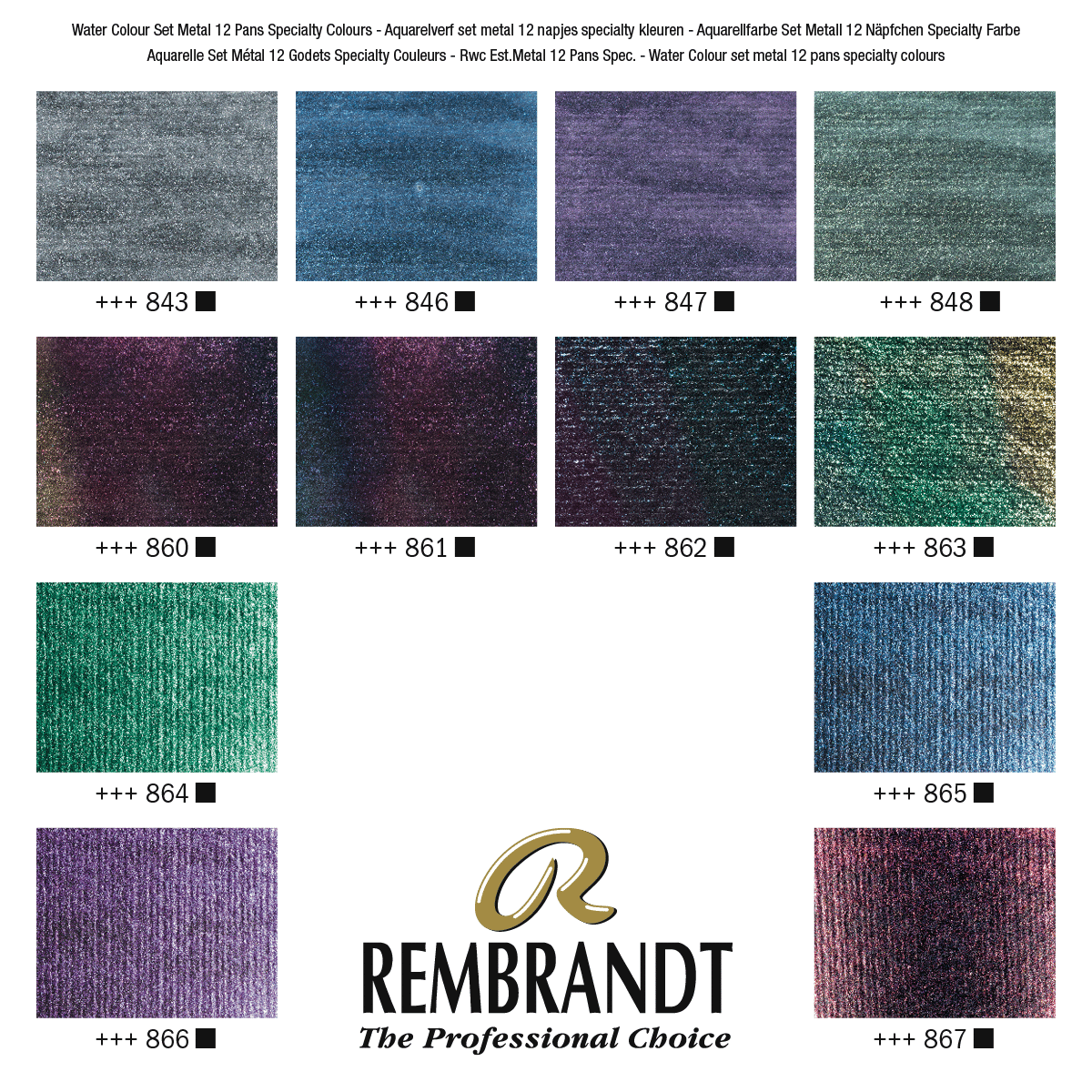REMBRANDT – Boîte métallique 12 demi-godets d’aquarelle spéciale
