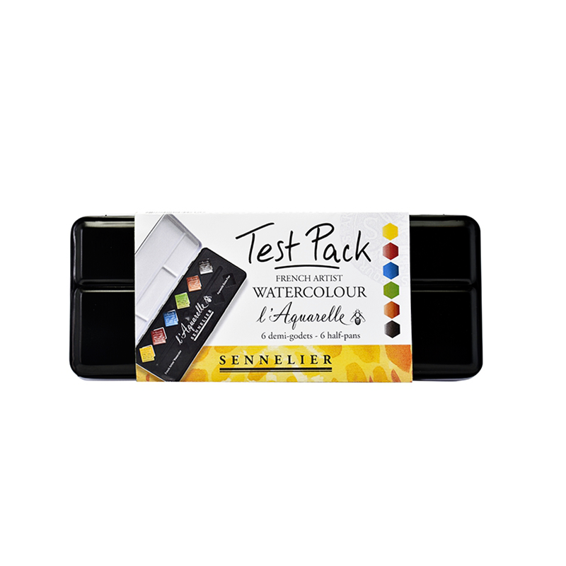 Le Test Pack Peinture aquarelle à base de miel de SENNELIER contient 6 demi-godets.