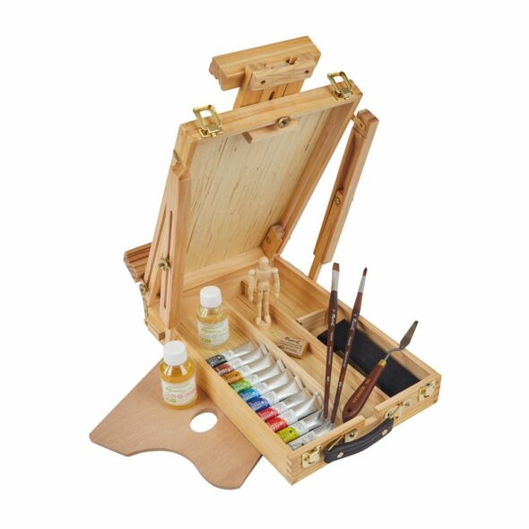 Ce Coffret Chevalet Huile Rive Gauche très complet contient 10 tubes d’huile fine Rive Gauche 21ml (116 Blanc de titane, 574 Jaune primaire, 674 Rouge vermillon, 686 Rouge primaire, 312 Bleu outremer clair, 385 Bleu primaire, 819 Vert de vessie, 252 Ocre jaune, 211 Terre de Sienne brûlée, 755 Noir d’ivoire), 1 couteau à peindre, 1 mannequin, 1 chiffon Sennelier, 2 pinceaux Précision 8930 et 8900, 1 mini savon au miel, 1 diluant et 1 médium 100ml #Green For Oil.