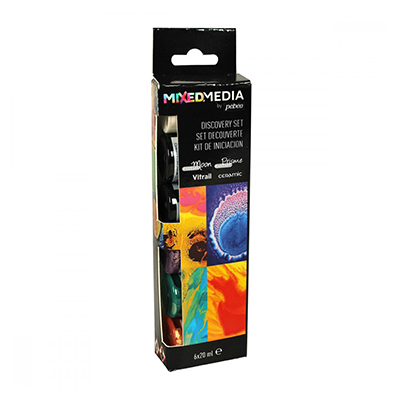 Le Set de découverte Mixed Média de PEBEO propose un assortiment de peintures à effets (Vitrail, Ceramic, Prisme, Moon). Ces peintures à effet sont toutes miscibles entre elles.