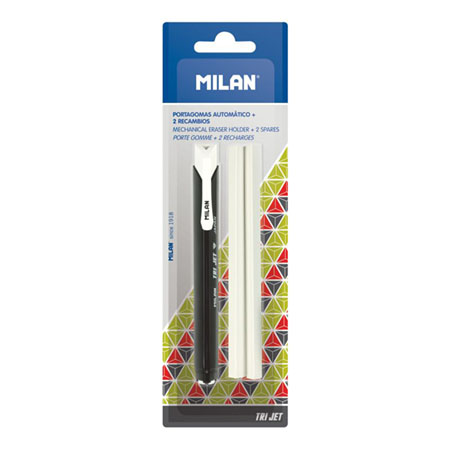 Le Porte-gomme triangulaire Tri Jet MILAN est fourni avec 2 gommes blanches en plastique pour gommer les crayons sur tout type de surfaces. Sa forme triangulaire et ses bords aigus permettent un gommage précis.