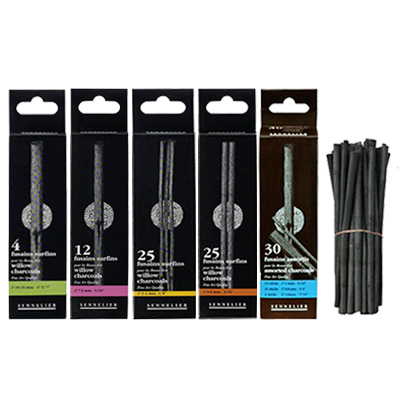 Fabriqués en Angleterre, les Fusains SENNELIER sont en bois de saule soigneusement sélectionné. Un processus unique de cuisson leur garantit une incomparable richesse dans le noir, une parfaite homogénéité et une extrême douceur.