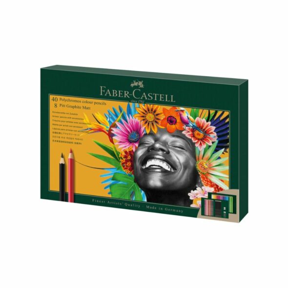 Composé de 40 crayons Polychromos, 8 crayons Pitt Graphite Matt (HB, 2B, 4B, 6B, 8B, 10B, 12B et 14B) 1 Taille-crayon en métal et 1 Gomme.