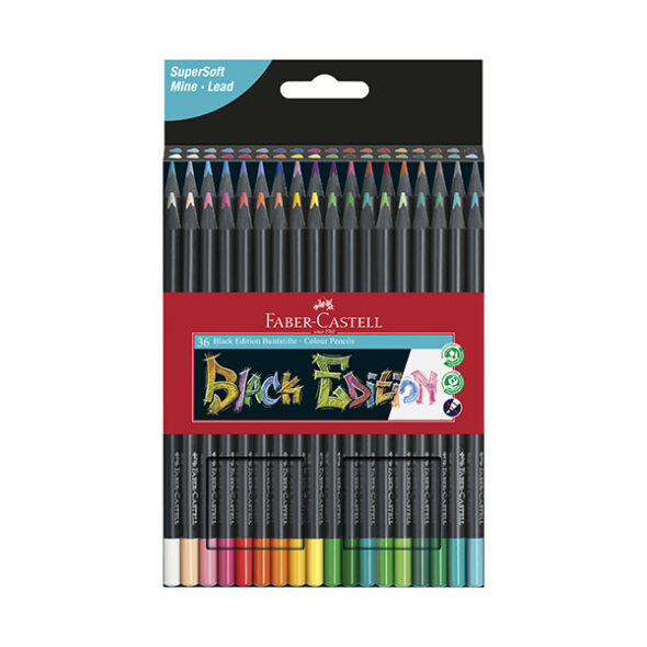 Les Crayons de couleur Black Edition Crayons de FABER CASTELL ont une forme triangulaires. Les nuances de couleurs riches et vives ont été spécialement sélectionnées par les professeurs d’art. La mine de ce crayon a la particularité d’être très tendre et agréable. Sa forme triangulaire permet un meilleur contrôle et un meilleur confort pour les petits doigts des enfants.