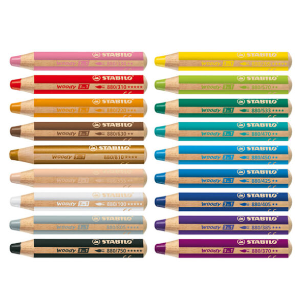 Le Crayon Woody 3 en 1 de STABILO est le tout en 1 créatif ! Il est le parfait compagnon créatif des enfants et le meilleur allié des parents. Lavable, ce crayon tout-terrain transforme n’importe quelle surface en terrain de jeu artistique : papier, carton, vitre, tableau blanc ou noir, plastique…