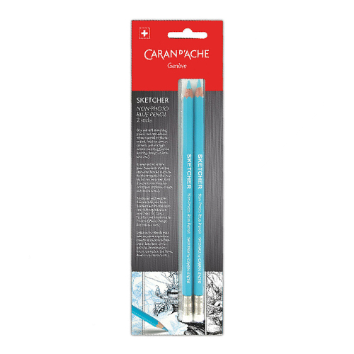 Le Set de 2 crayons Sketcher non-photo bleu de CARAN D’ACHE propose un crayon sec de couleur bleue à mine fine, tendre et résistante permettant à la fois un tracé en finesse et un travail en aplat pour les esquisses de base. Grâce à la gomme intégrée, le gommage sera facile et vous pourrez corriger à l’infini les croquis tout en conservant la propreté du tracé.