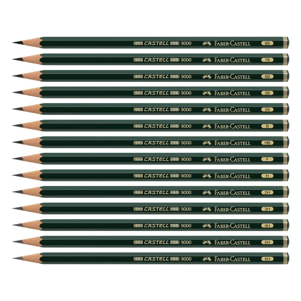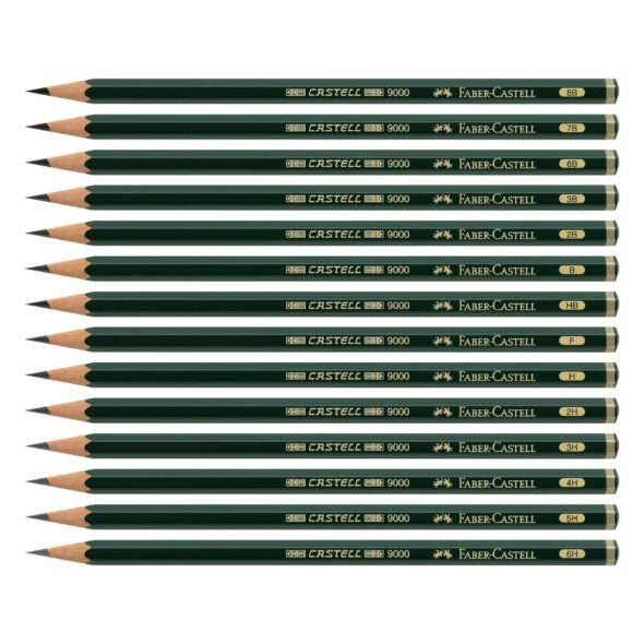 Le Crayon graphite Castell 9000 FABER CASTELL, un véritable classique parmi les crayons graphite, a été lancé en 1905 par le comte Alexander von Faber-Castell. Sa qualité exceptionnelle et son vaste choix de duretés en font un outil indispensable pour les artistes et dessinateurs. Sa mine, entièrement collée au bois, est extrêmement résistante au bris. Disponible en 16 degrés de dureté, ce crayon est parfait pour tous les travaux artistiques et techniques. Il offre une qualité supérieure pour écrire, dessiner et faire des esquisses, avec un vernis écologique à base d’eau et une mine renforcée par une colle spéciale. Les degrés de dureté vont de 8B à 6H.