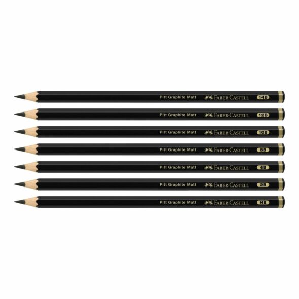 Le nouveau Pitt Graphite Matt FABER CASTELL a été spécialement conçu pour réduire les reflets de lumière sur le papier et offrir un effet de profondeur maximal en variant les différents degrés de dureté. Cette innovation mondiale présente un crayon extra-mat de la plus haute qualité artistique, avec un rendu ultra-mat pour minimiser les reflets. Offrant la densité de couleur la plus élevée, il crée un effet de profondeur maximal et une application de graphite particulièrement douce. Idéal pour l’écriture, le dessin et l’esquisse, il est parfait pour les œuvres monochromes en graphite. La mine est très résistante et le bois utilisé provient de forêts gérées durablement, avec un vernis écologique à base d’eau.